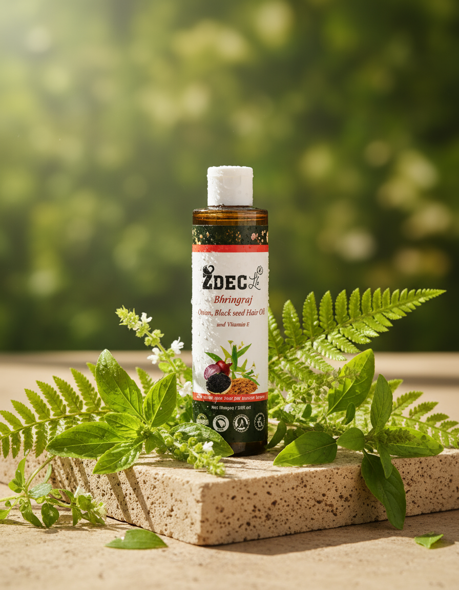 Zdeclife Bhringraj oil is prepared from the leaves of the bhr ingraj herb. Bhringraj oil is rich in iron, calcium, magnesium, vitamin D, and vitamin E. Bhringraj oil has antimicrobial and antifungal properties that may help to reduce dandruff. The oil also has anti-inflammatory properties, which can help psoriasis or other skin irritations on the scalp. The darkening properties may help hair appear less gray. Magnesium is known for its relaxant properties and may promote muscle relaxation, sleep and it may also improve mood.